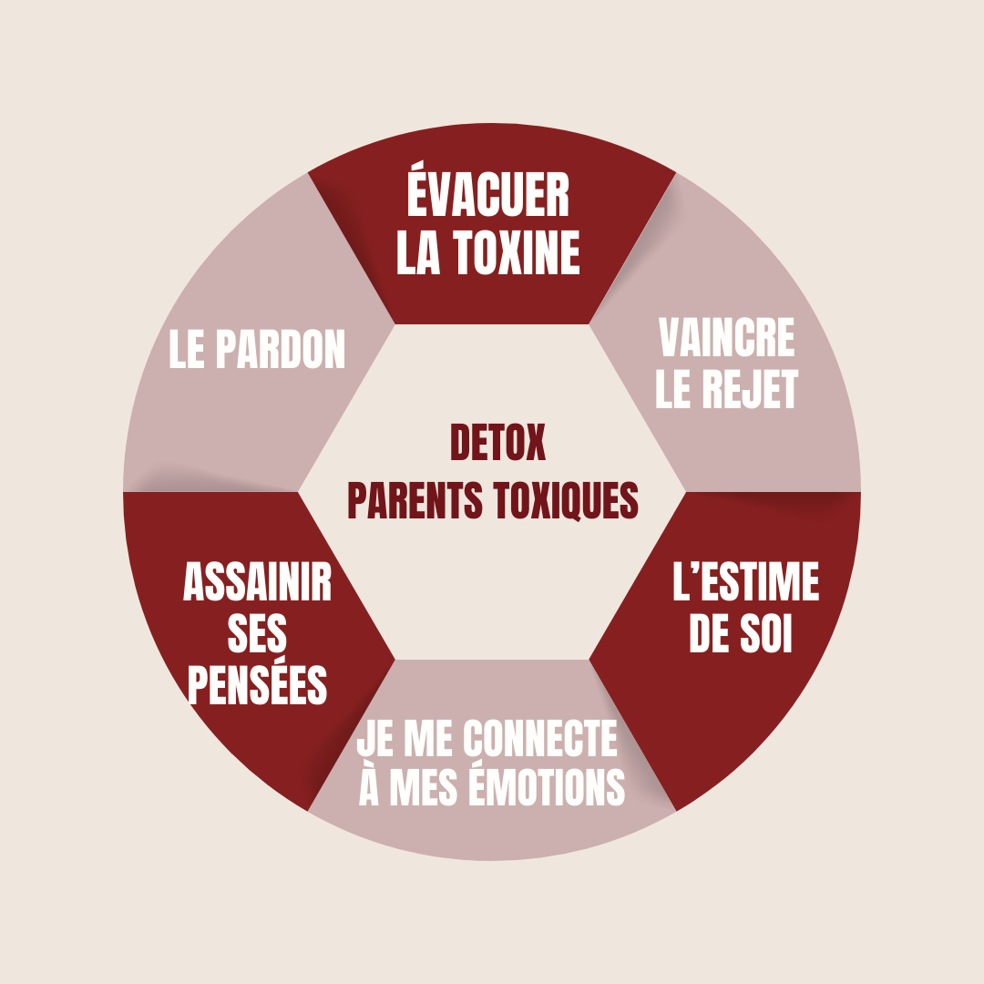 Le parent toxique, en blessant continuellement son enfant, lui provoque des blessures qui, lorsqu'elles ne sont pas traitées, s'infectent et propagent dans tout le corps cette fameuse toxine. D'où le fait qu'il est absolument indispensable, et même vital, d'évacuer la toxine pour retrouver ta santé, une vie saine et normale.