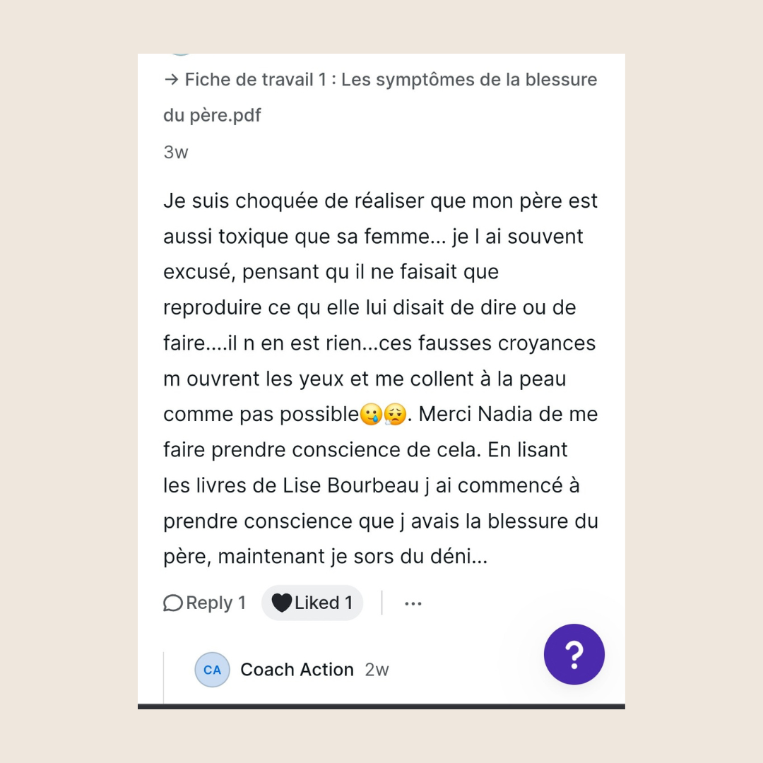 " J'ai fait appel à Nadia pour le programme « Detox parents toxiques ».